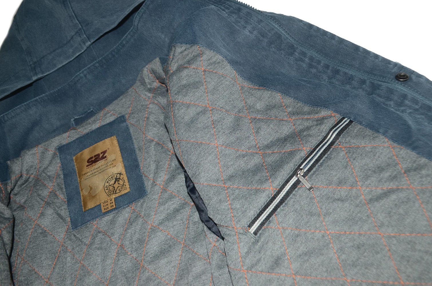 Описание Saz Jeans ORIGINALВинтажная мужская куртка с капюшеном и внутренним утеплением Застежки: молния, клепки Капюшен: съемный на молнии Карманы: 4 наружных (молния) , 1 внутренний (молния) Цвет: серый Состав ткани: 50% хлопок, 50% полиэстер, не плотный подклад ( весна, осень) Размещение производства: КНР (высокое фабричное качество)