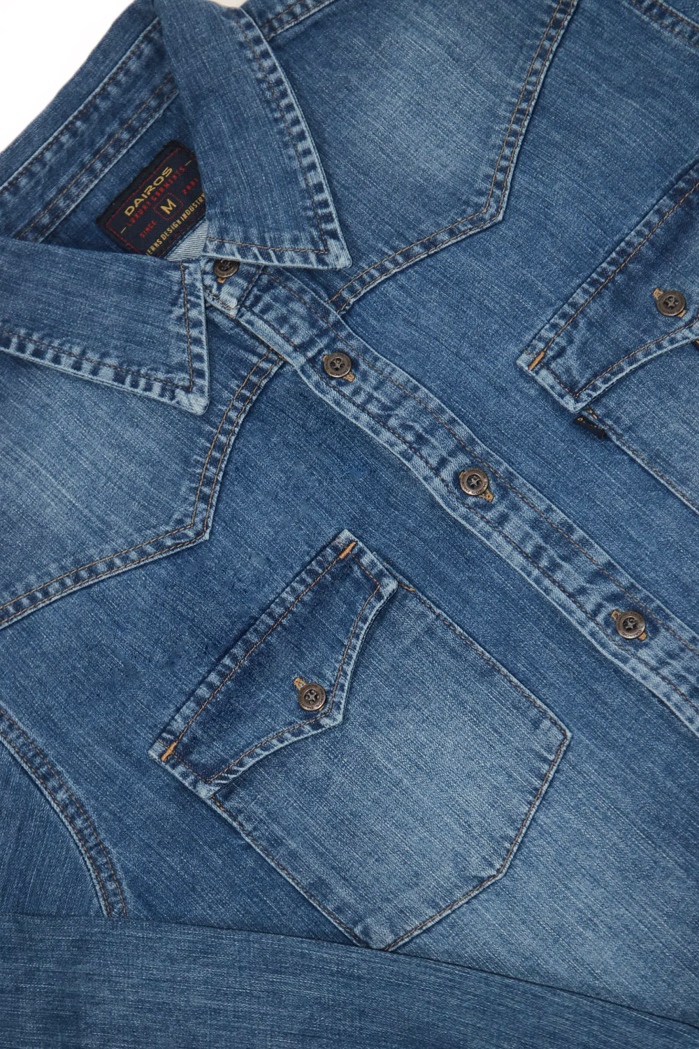 Описание Dairos ORIGINALКлассическая джинсовая рубашка прямого кроя с небольшими потертостями из натурального 100% хлопка средней плотности. Носится как на выпуск, так и запревленной в брюки. Цвет: светло-синий Страна бренда: Турция