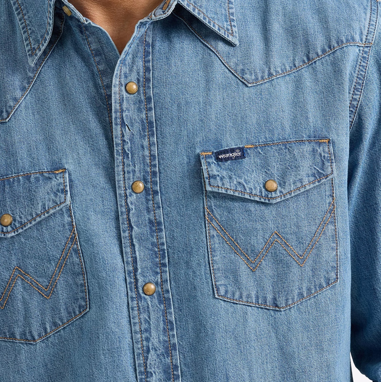 Описание Wrangler ORIGINALMen's Wrangler® Classic Denim Western Snap Shirt Original