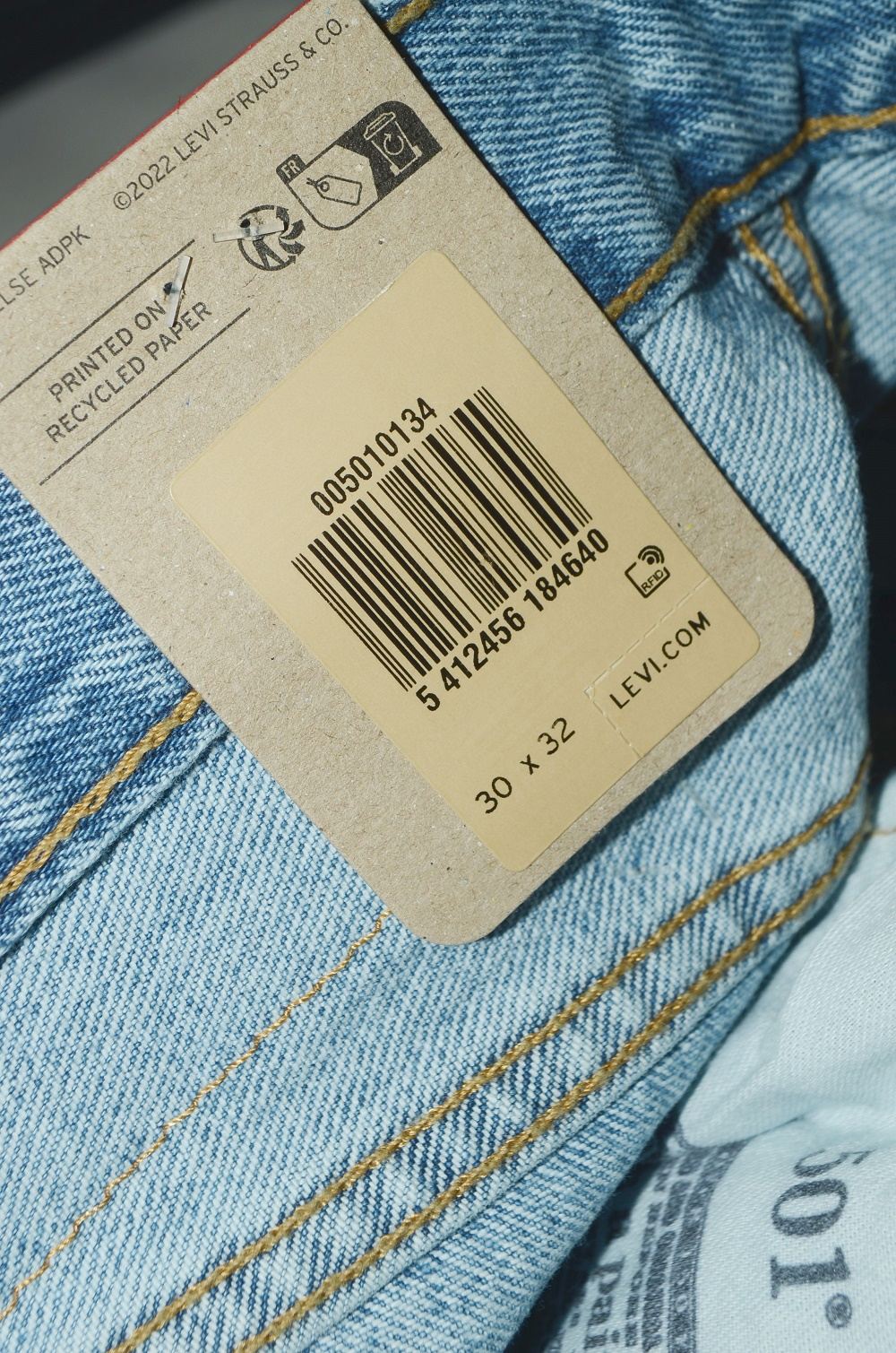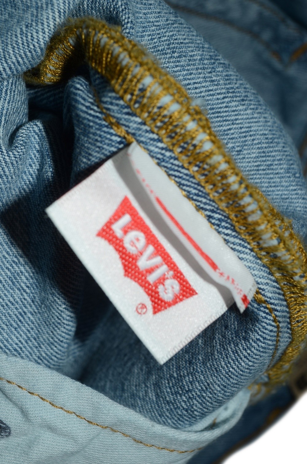 Фирменный лейбл Levis и дугообразные строчки на задних карманах.