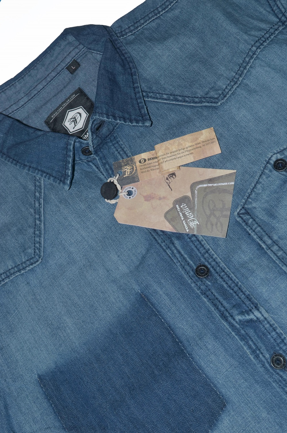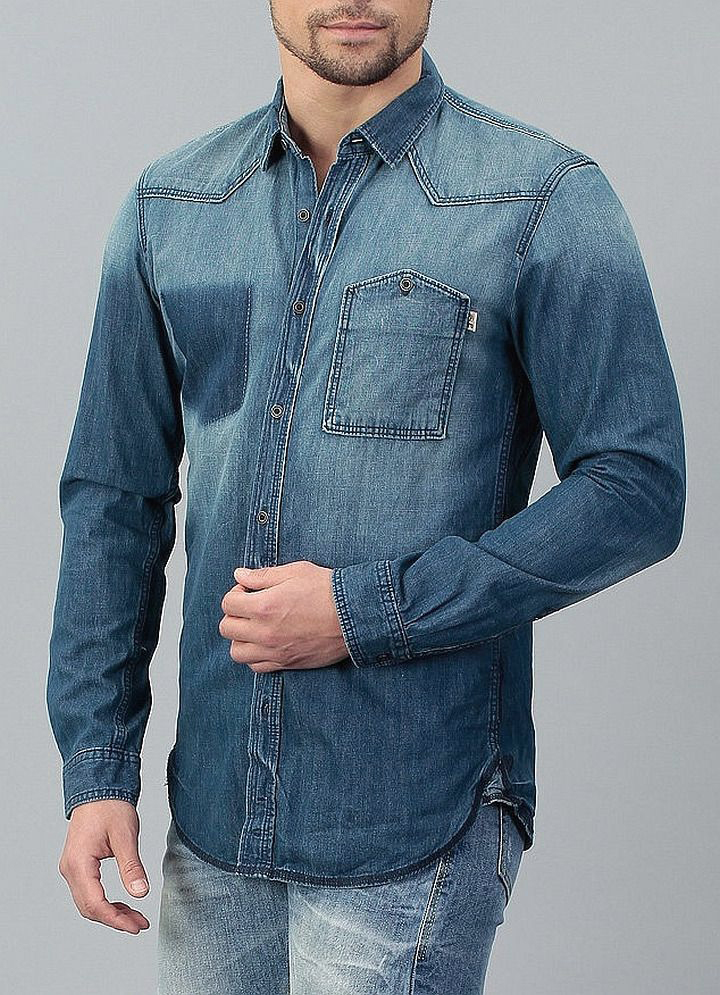 Описание Tom Tailor ORIGINALМужская, винтажная джинсовая рубашка полуприталенного силуэта