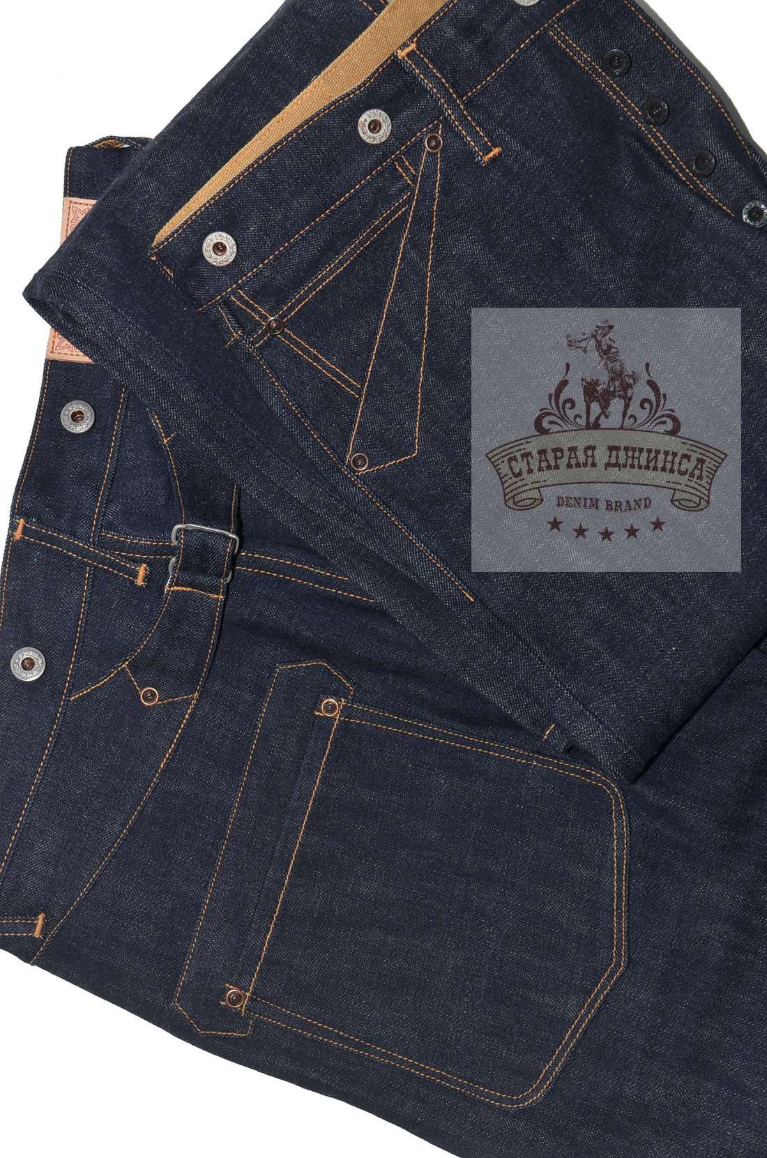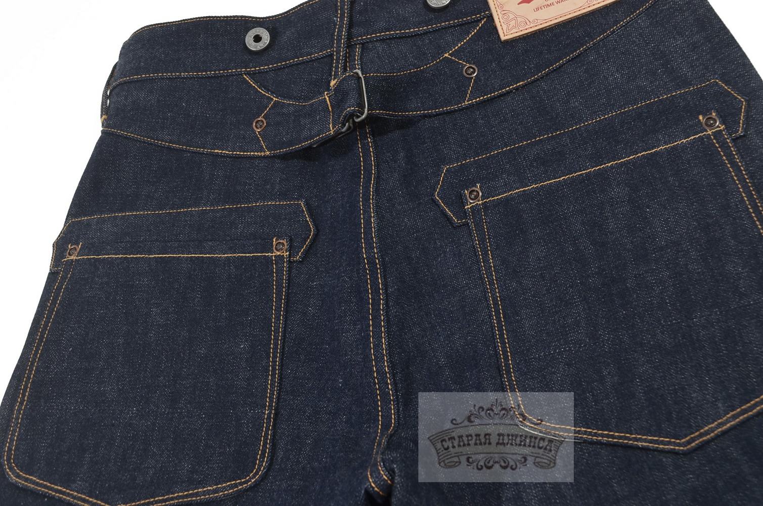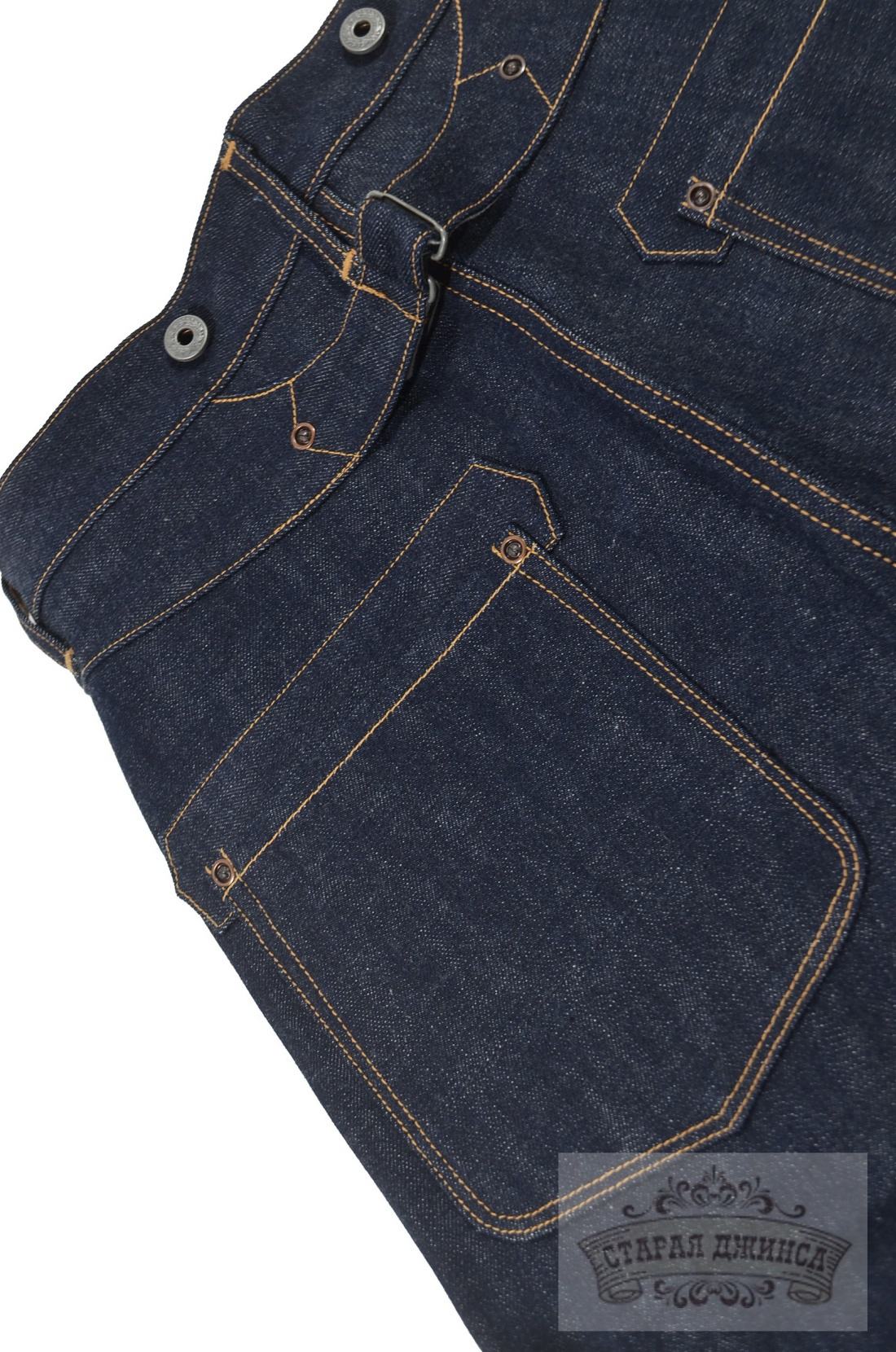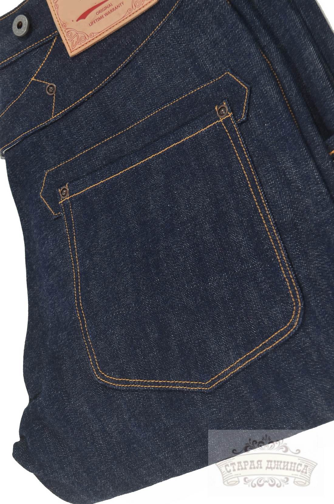 100% хлопок, необработанный тяжелый деним 16 унций, сэлвидж деним. Патч из коровьей кожи.Медные заклепки. Застежка - болты. Прямой крой, стандартная старая добрая посадка. Задний карман усилен дополнительной тканью. Швы - цепной стежок. Цвет: темно-синий с чернильным оттенком. Могут дать небольшую усадку по длине. Бережная ручная стирка. При покупке прилагаем инструкцию по уходу.