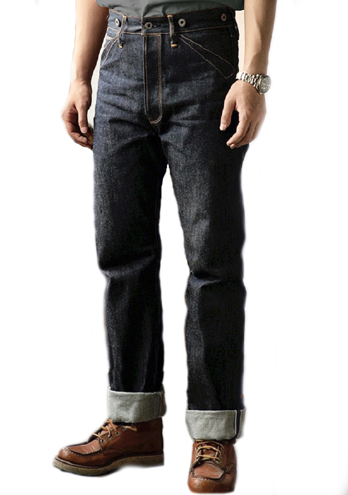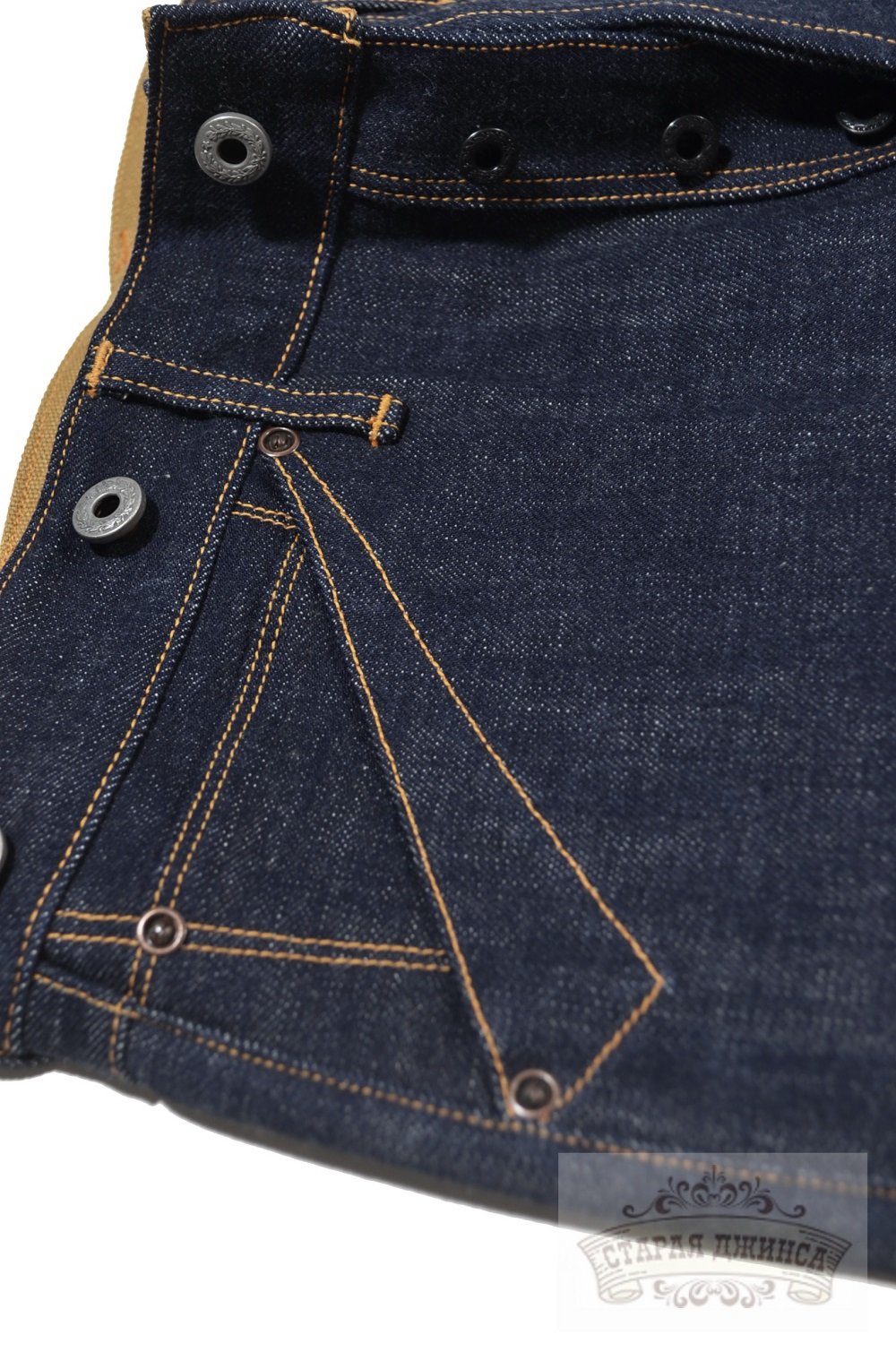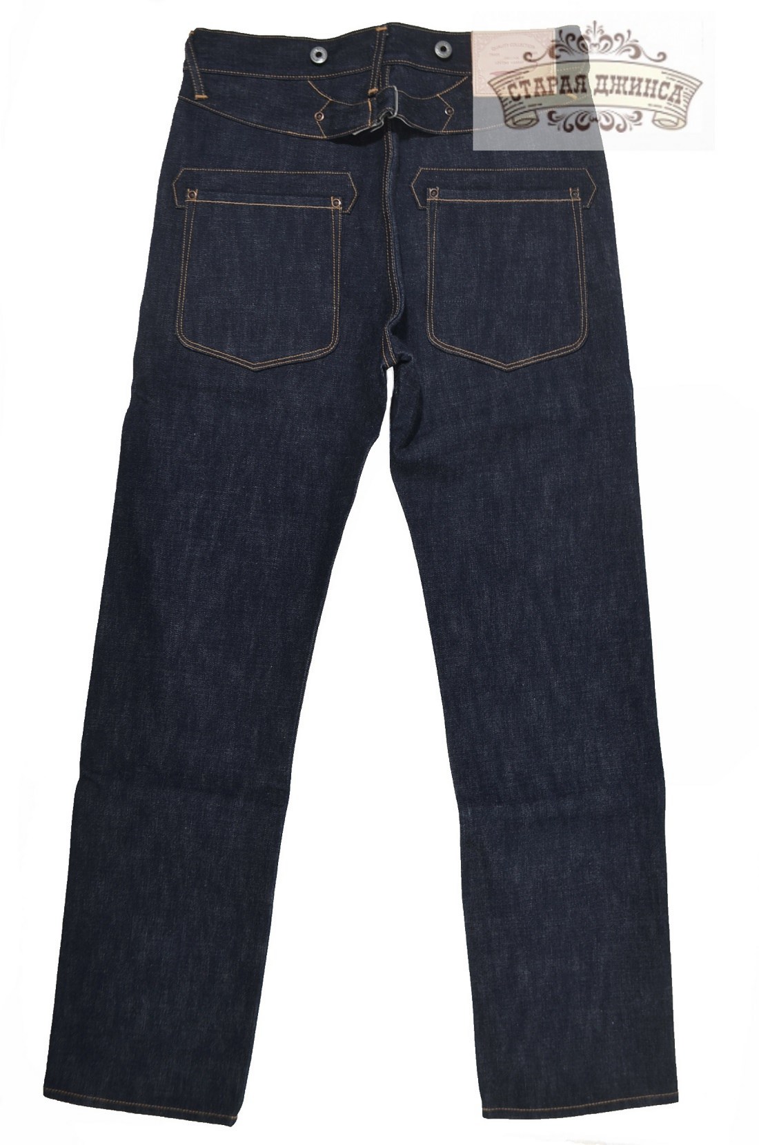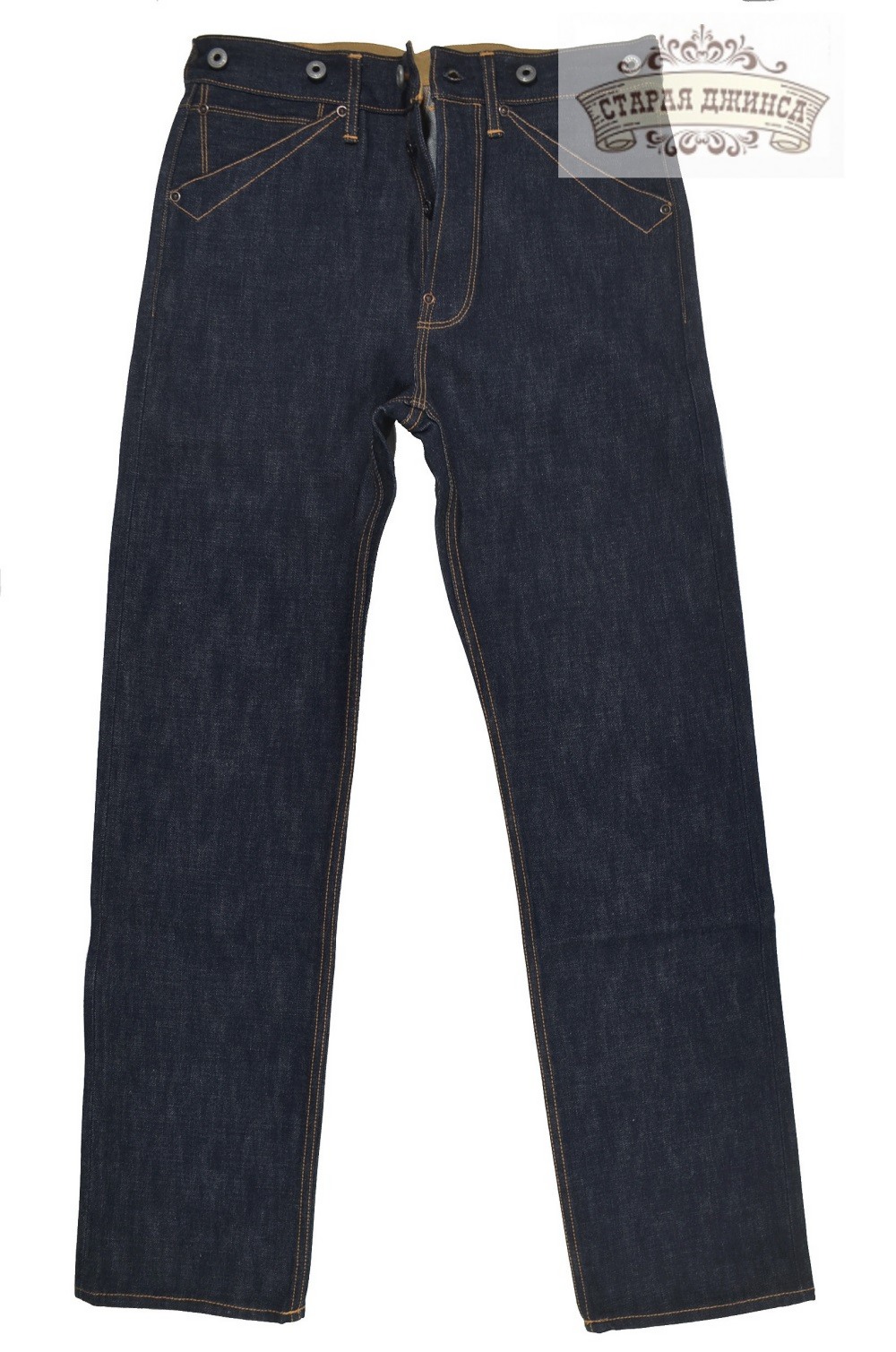 100% хлопок, необработанный тяжелый деним 16 унций, сэлвидж деним. Патч из коровьей кожи.Медные заклепки. Застежка - болты. Прямой крой, стандартная старая добрая посадка. Задний карман усилен дополнительной тканью. Швы - цепной стежок. Цвет: темно-синий с чернильным оттенком. Могут дать небольшую усадку по длине. Бережная ручная стирка. При покупке прилагаем инструкцию по уходу.