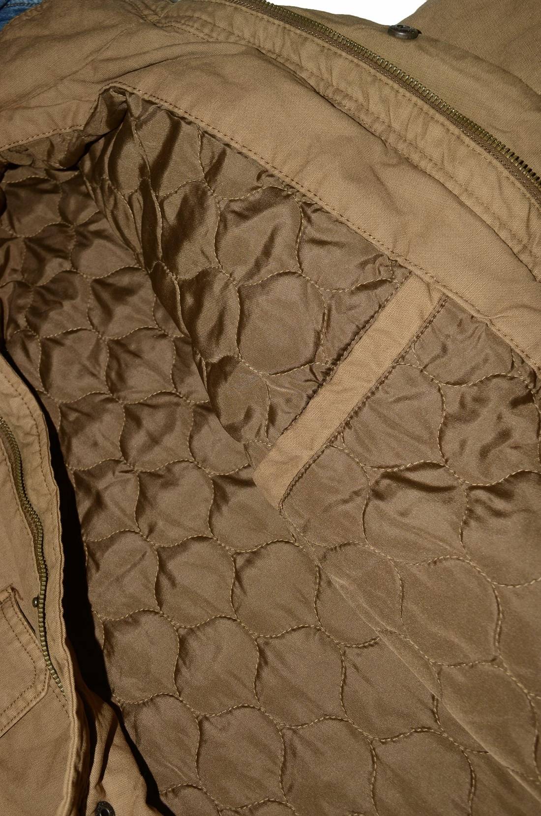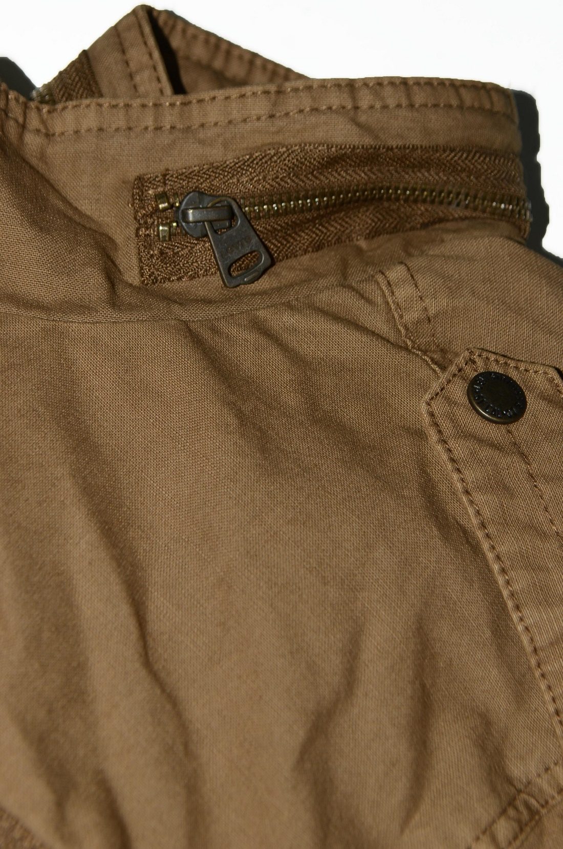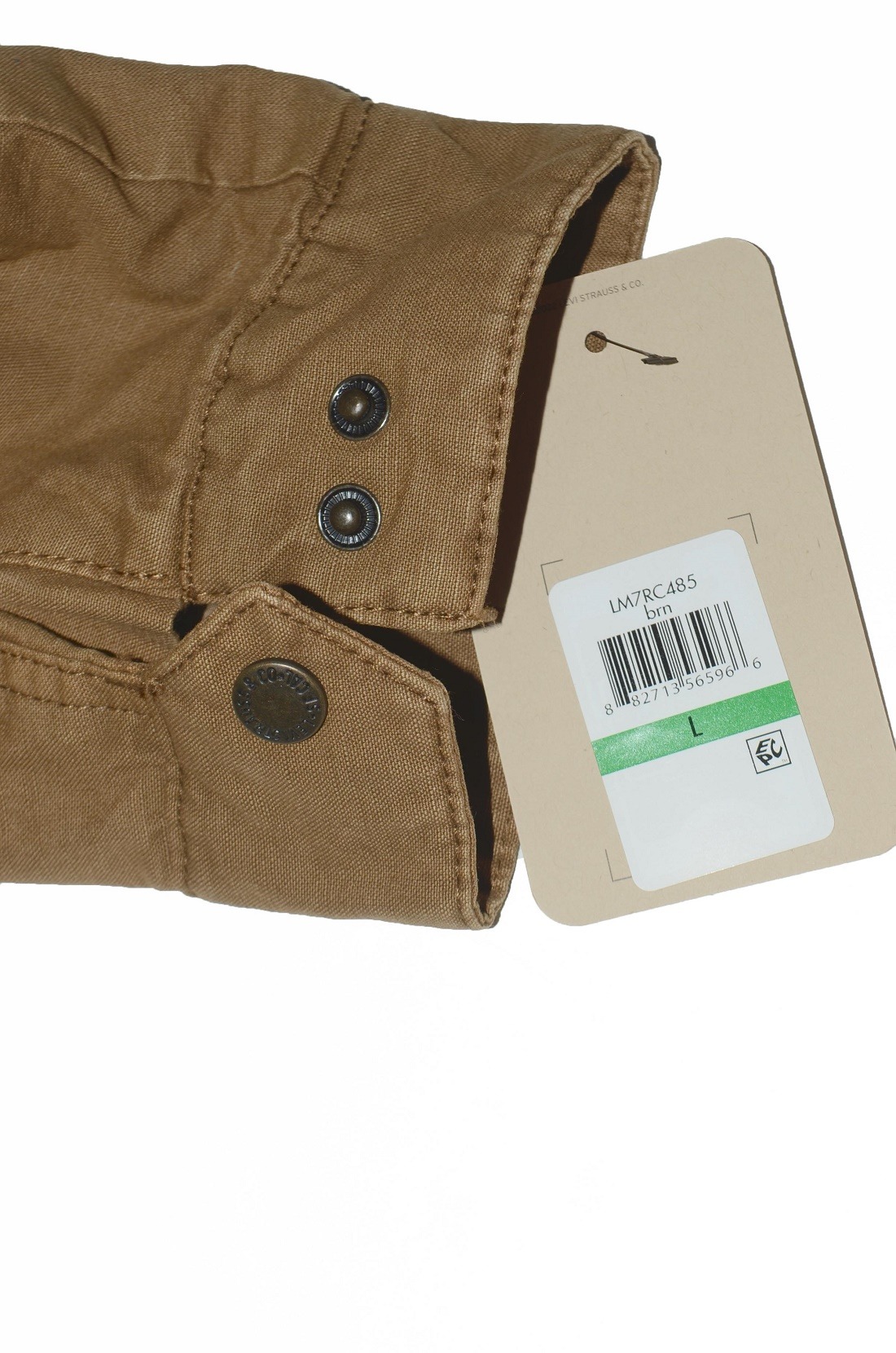 Два нагрудных кармана с клапанами на кнопках, один прорезной карман на молнии над левым нагрудным карманом, два нижних прорезных кармана и один внутренний прорезной карман. Центральная передняя планка со скрытой застежкой-молнией и кнопкой, а также открытая молния на воротнике. Регулируемые манжеты на кнопках и погоны на плечах Красный язычок Levi's на левом нагрудном кармане. Карманы: пять наружных , один внутренний Застежки: молния, клепки Крой: прямой Состав ткани: 100%хлопок / 100%полиэстер Страна бренда: США Размещение производства: КНР