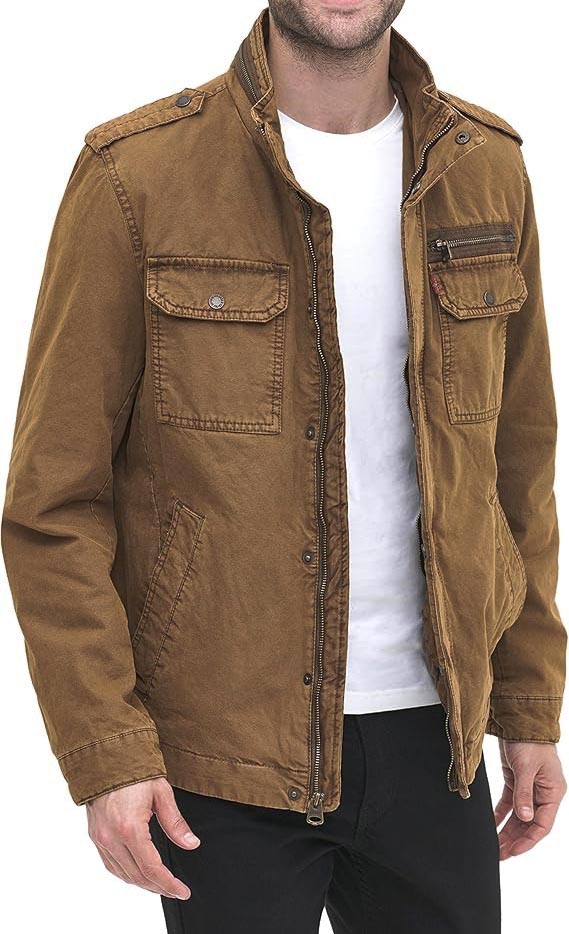 Описание Levi's ORIGINALLevi's Mens Washed Cotton Military Jacket Original USКуртка в стиле милитари с воротником-стойкой из стираного хлопка