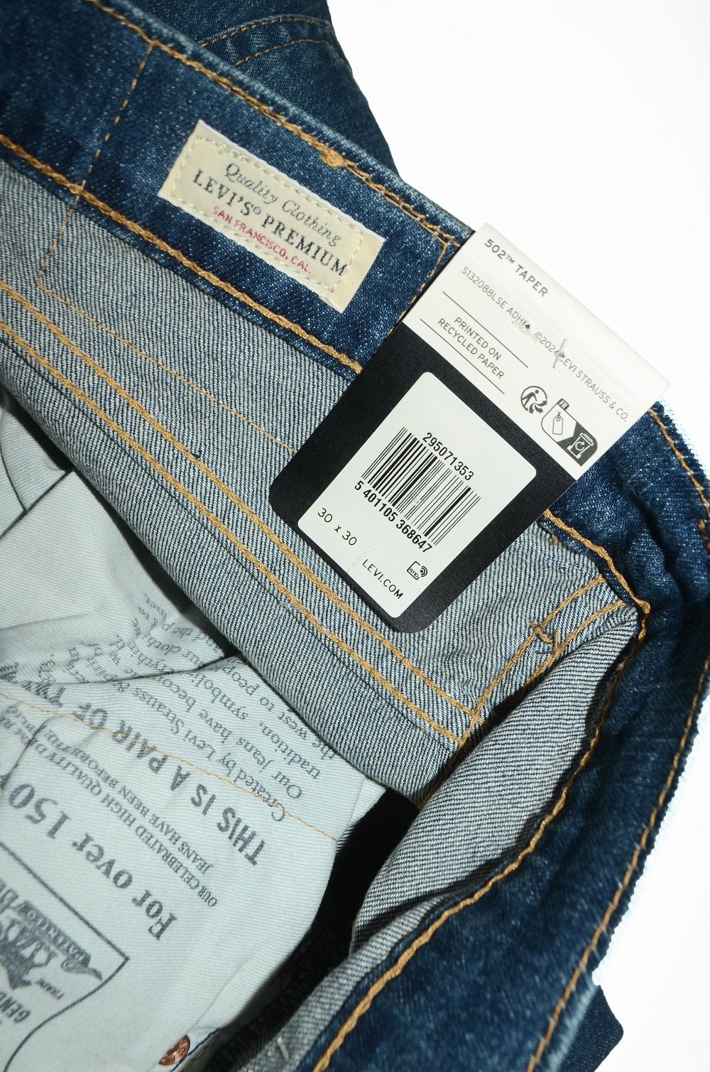Так что такую модель можно считать эксклюзивной, не так уж часто она встречается. Впервые этот вопрос возник в 2010 году. Джинсы Levis без той самой, главной, надписи "LEVIS" на красном карманном флажке (ярлыке). Затем последовало объяснение компании LEVI STRAUSS- "пустые" ярлыки на самом деле существуют, так поступает компания, изготавливая джинсы без надписи "Levis" на флажке. Объяснение лежало в плоскости борьбы с контрафактом. Наличие надписи никак нельзя соотнести ни с моделью, ни с размером, ни с фабрикой производства. Эти ярлыки появляются в случайном порядке. Характеристики Levi's 502 ORIGINAL