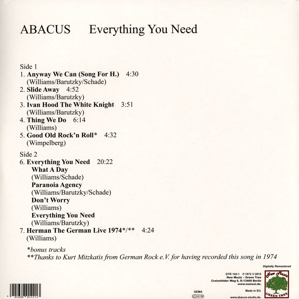 Описание Abacus - Everything You Need 1972Abacus – Everything You Need 1972