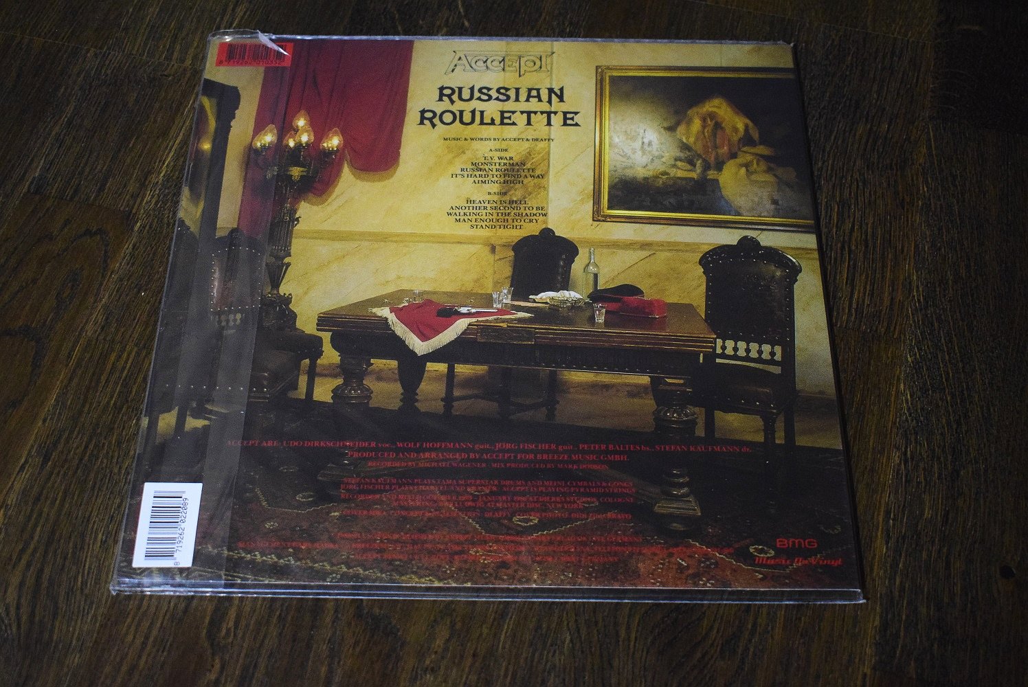 БЕЗОПАСНАЯ ОПЛАТА НА САЙТЕ В нашем магазине Вы можете оплатить свой заказ платежной картой Visa, Mastercard или МИР. После успешной оплаты Вы получите электронный чек. Информация, указанная на чеке, содержит все данные о проведенной операции оплаты. Данные Вашей платежной карты гарантировано защищены в соответствии со стандартами безопасности PCI DSS. Товар отправляем в надежной упаковке, все отправления застрахованы Внимание: Как и все продавцы изданий на виниле, мы пользуемся международно признанными условиями для частной продажи оригинально запечатанных пластинок. Ввиду невозможности контроля, нет гарантии на дефекты и производственный брак. Мы не принимаем никаких претензий, не делаем возвратов и каких-либо компенсаций. При покупке учитывайте это. Доставка Сумма доставки рассчитывается индивидуально, по тарифам СДЭК и ПОЧТЫ РОССИИ после оформления Вами заказа. На сайте могут быть использованы каталожные фото товара, Реальные фото товара по запросу (при покупке товара). Характеристики Accept – Russian Roulette - 1986