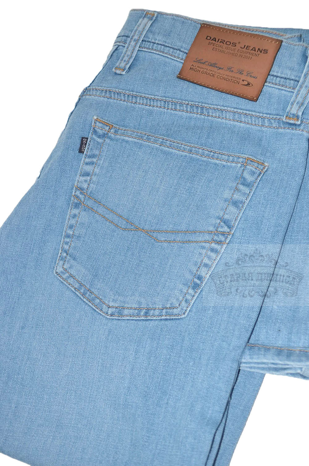Описание DairosКомфортные мужские джинсы классического кроя Состав ткани: 98%хлопок 2%эластан Посадка: высокая Плотность: ниже средней (не совсем тонкие, весна-лето) Размещение производства: Турция