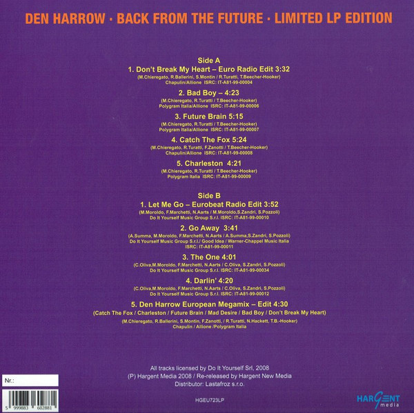 Описание Den Harrow – Back From The Future 1999 (2019) LPDen Harrow – Back From The Future 1999 (2019) LP