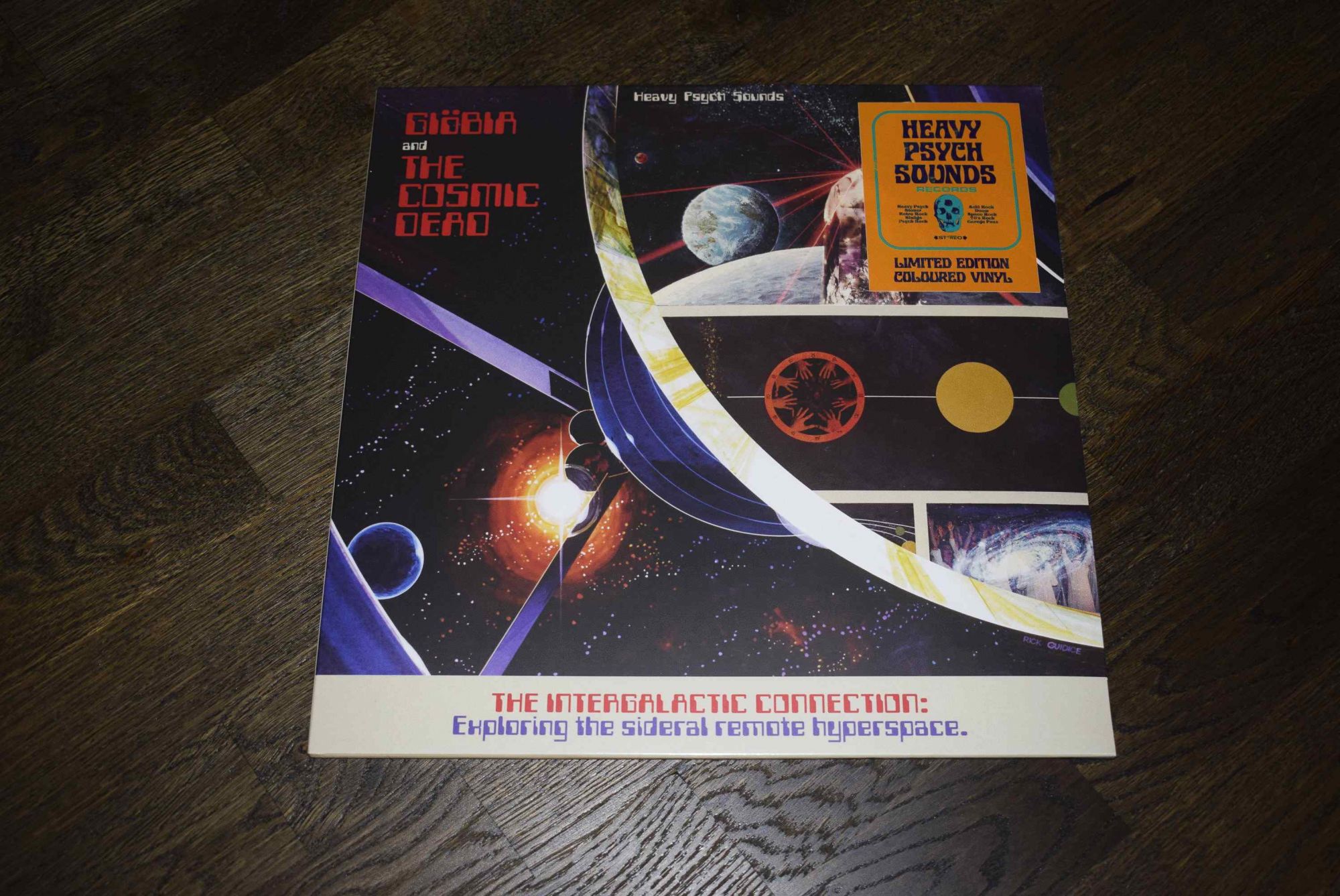 Exploring The Sideral Remote Hyperspace. Heavy Psych Sounds – HPS185 LP, Album, Limited Edition, Red/Blue Split Italy 2021 Лимитированном издании на виниле сине-красного цвета (*THIS*), тираж 350 экземпляров. (Рекламная наклейка на обложке оранжевого и бирюзово-зеленого цвета). НОВЫЙ, В УПАКОВКЕ ПРОИЗВОДИТЕЛЯ 1. Canyon Moon 2. Julia Dream 3. Meshes of the Afternoon 4. The Cosmic Dead - Crater Creator На первый взгляд, можно было бы принять The Intergalactic Connection – Exploring The Sideral Remote Hyperspace за саундтрек к какому-нибудь давно забытому научно-фантастическому сериалу. Этот двойной релиз представляет собой совместную работу итальянской спейс-рок-группы GIÖBIA и галактических гласгоуских музыкантов THE COSMIC DEAD на лейбле Heavy Psych Sounds . GIÖBIA завоевывают себе имя на андеграундной психоделической сцене с 2004 года, создавая синтезаторный ретро-рок в Милане, а THE COSMIC DEAD в этом году отмечают свой 10-летний юбилей, вспоминая десятилетие своих великолепных спейс-рок-альбомов. The Intergalactic Connection обещает стать одним из самых необычных релизов этого года, а обложка от ретро-ориентированной студии Branca Studio делает его по-настоящему впечатляющим.