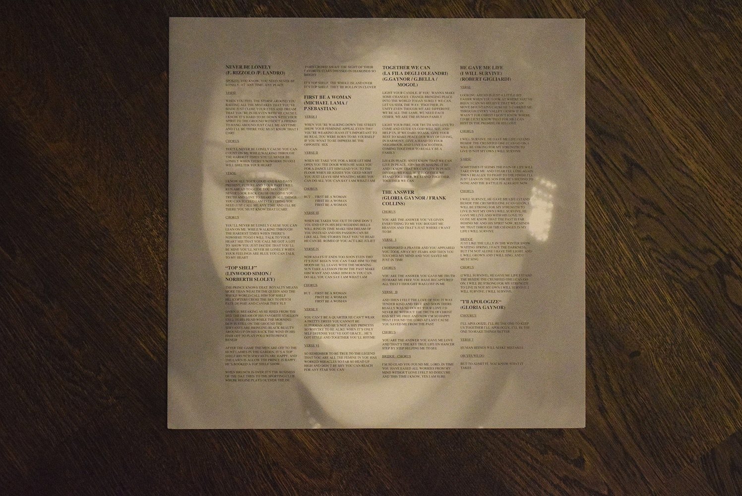 New Music International – NMLP 1032 LP, Album Italy 1992 Первое здание. СОСТОЯНИЕ: конверт NM / винил NM ЗВУК: 1 сторона NM / 2 сторона NM В начале 1-х песен с двух сторон небольшие щелчки, только из-за этого NM A1 Never Be Lonely 5:07 A2 Top Shelf 4:49 A3 First Be A Woman 4:51 A4 Together We Can 3:55 A5 The Answer 4:25 B1 He Gave Me Life (I Will Survive) 5:01 B2 I'll Apologize 4:47 B3 Guess Who 4:30 B4 Shine On Silver Moon 4:51 B5 Love Affair 4:21