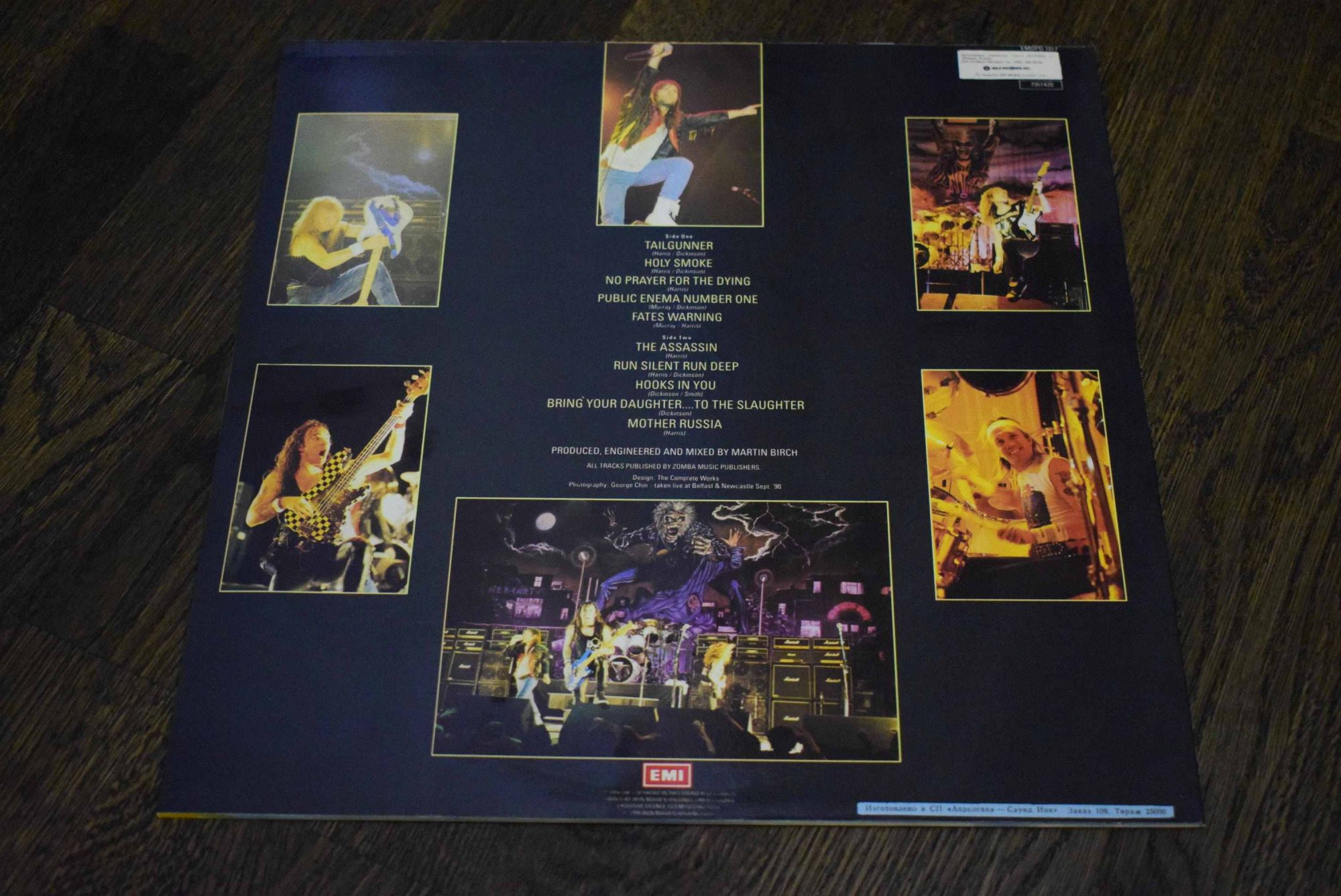 Описание Iron Maiden – No Prayer For The Dying - 1990 GALA 1993 (Mint)Iron Maiden – No Prayer For The Dying - 1990 GALA 1993 (Mint) Gala Records, Inc. – EMDPD 1017, EMI – EMDPD 1017 LP, Album, Reissue Russia 1993 Mint - не играный По эксклюзивной лицензии EMI Records Ltd. © 1990 Iron Maiden Holdings Ltd. Изготовлено в СП «Апрелевка — Саунд Инк». Заказ 109. Тираж 25000. A1 - Tailgunner A2 - Holy Smoke A3 - No Prayer For The Dying A4 - Public Enema Number One A5 - Fates Warning B1 - The Assassin B2 - Run Silent Run Deep B3 - Hooks In You B4 - Bring Your Daughter... ...To The Slaughter B5 - Mother Russia ________________________________________________________