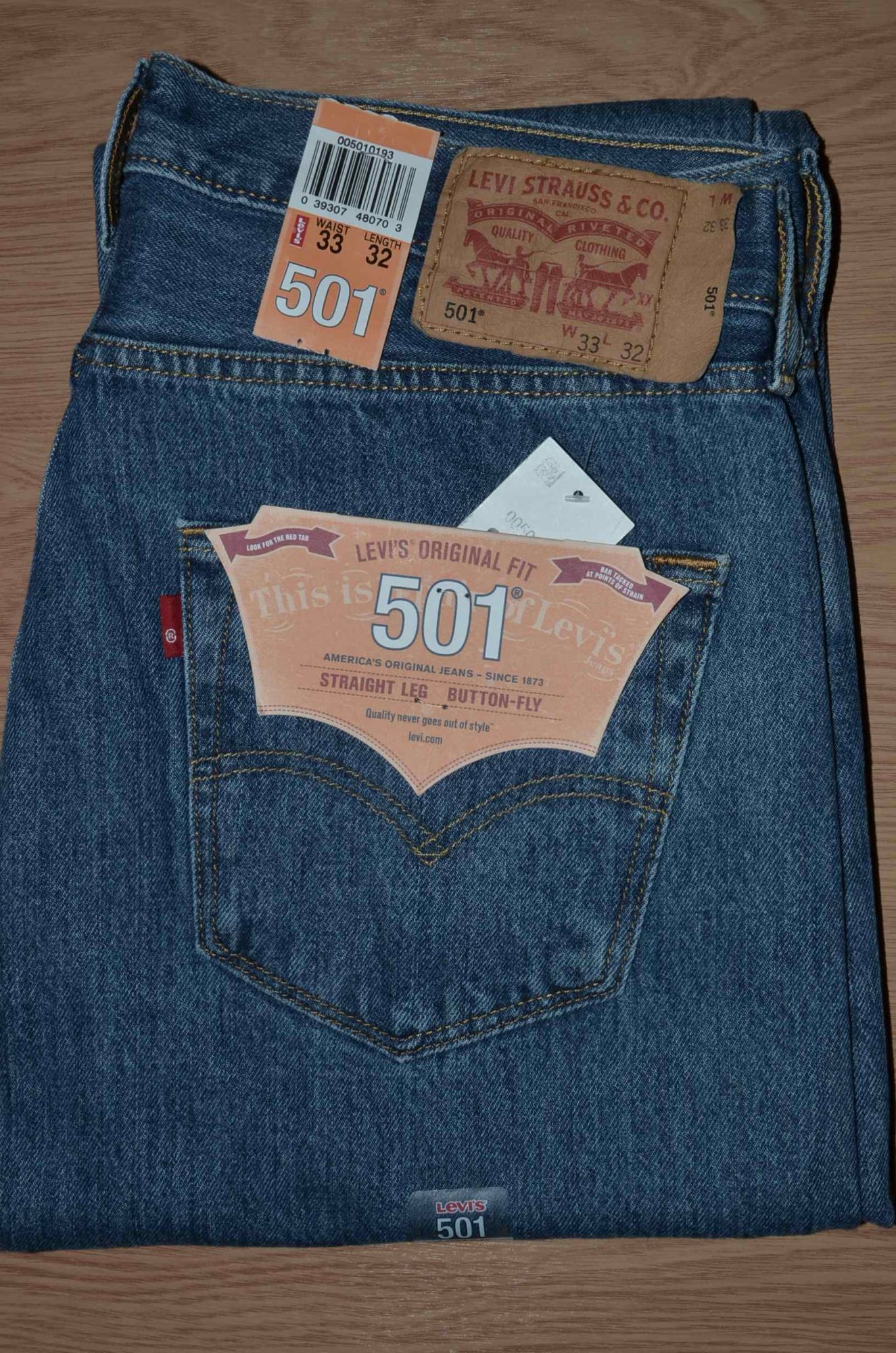 Производится с видоизменениями с 1873 года. 12.5 унций (достаточно плотные). Стандартный классический прямой крой, ширинка на пуговицах, пять карманов, после стирки не усаживаются. Страна бренда: США Страны размещения производства: Мексика, Никарагуа, Лесото, Бангладеш, Шри-Ланка, Гаити, Камбоджа, Колумбия, Гватемала, Египет и др. Если Вам попались джинсы с табом на котором нет никакой надписи и только значок ® то считайте, что это удача.