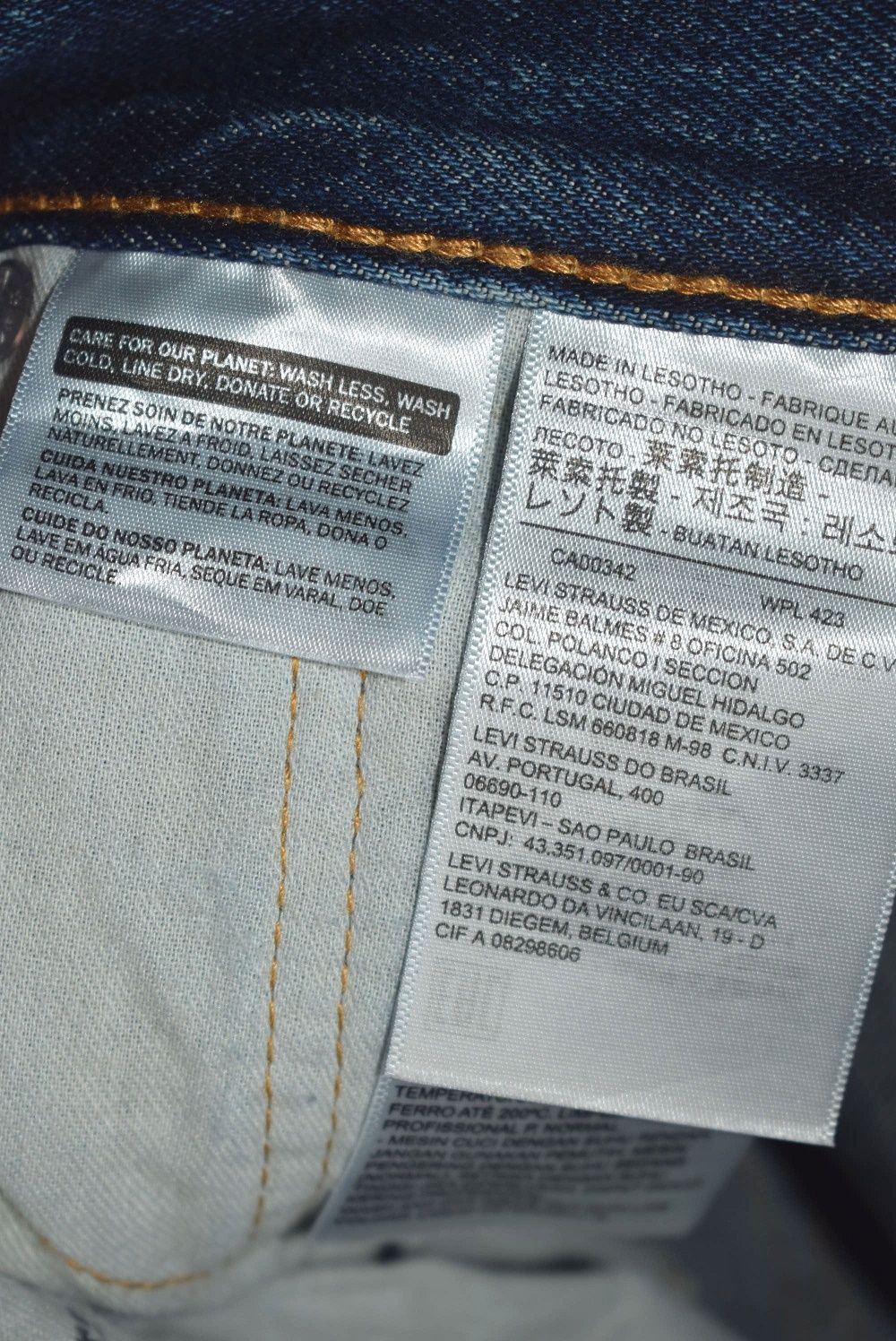 а внизу несколько зауженные штанины. У 505-х чуть более низкая посадка. А так же главное отличие — это то, что они застегиваются на молнию. Эти джинсы предназначены для мужчин абсолютно разных возрастов. В последнее время в дизайн были внесены изменения, изменилась форма язычка замка (сам замок YKK). Пока встречаются джинсы старого и нового дизайна. Топовая классическая модель джинсов марки (классика). Модель имеет швы "восьмеркой", застежка –молния. Карманы: пять, классические формы. Модель прямая, имеет высокую посадку на бедрах, джинсы сидят идеально, даже на не стандартной фигуре. 100% хлопок плотностью 14,4 унций Полноразмерная модель, не маломерка. Цвет: Dark Stonewash Страна бренда: США Страны размещения производства: Мексика, Никарагуа, Лесото, Бангладеш, Шри-Ланка, Гаити, Камбоджа, Колумбия, Гватемала, Египет и др. Уход за изделием: Машинная стирка в холодной воде. Предварительно вывернуть наизнанку, застегнуть молнию и пуговицу. Сушка возможна только естественным образом. Не используйте режим сушки стиральной машины, или сушильный шкаф. Можно гладить. Если Вам попались джинсы с табом на котором нет никакой надписи и только значок ® то считайте, что это удача.