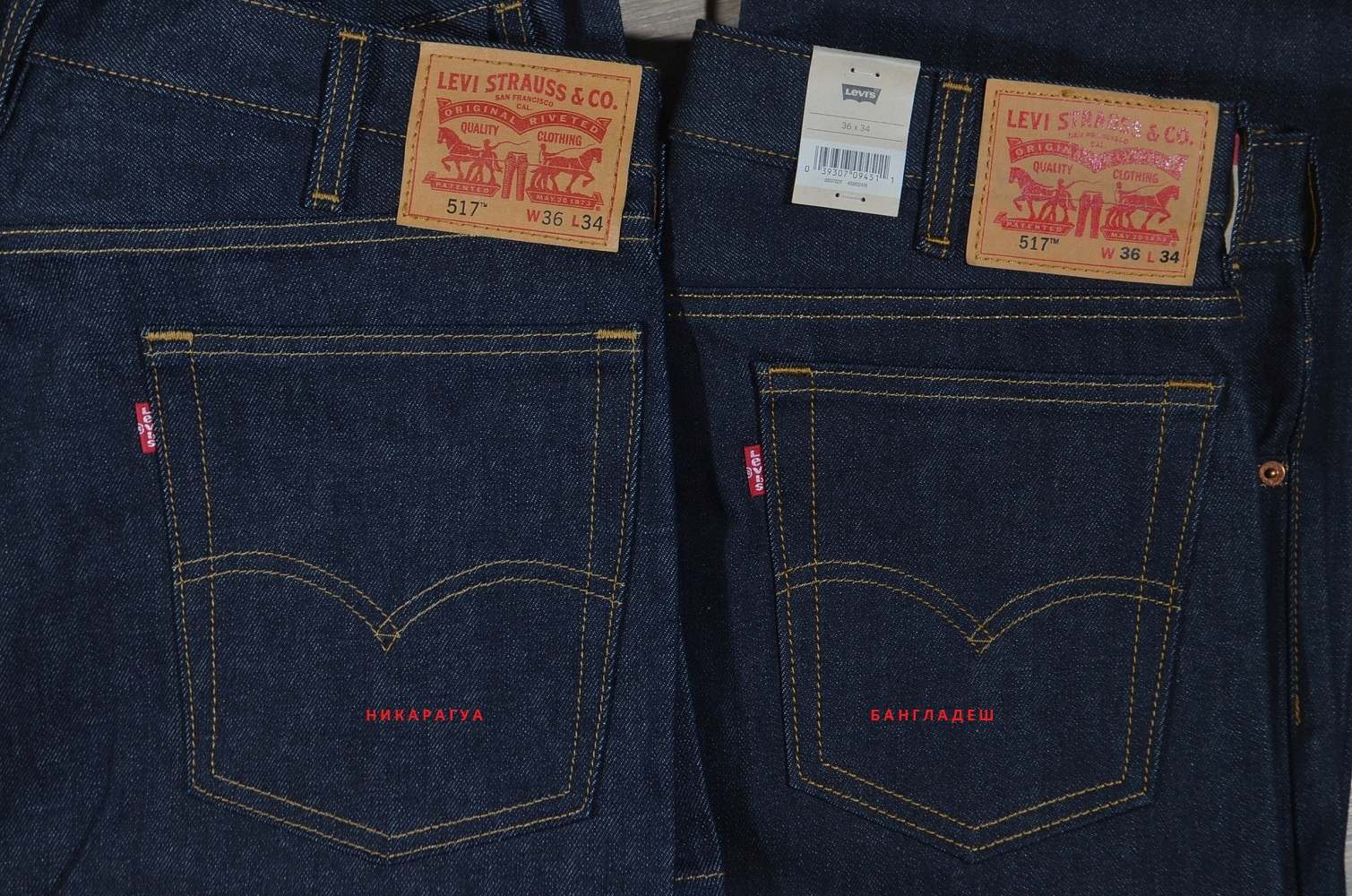Так что такую модель можно считать эксклюзивной, не так уж часто она встречается. Впервые этот вопрос возник в 2010 году. Джинсы без той самой, главной, надписи на красном карманном флажке (ярлыке). Затем последовало объяснение компании - "пустые" ярлыки на самом деле существуют, так поступает компания, изготавливая джинсы без надписи на флажке. Объяснение лежало в плоскости борьбы с контрафактом. Наличие надписи никак нельзя соотнести ни с моделью,ни с размером, ни с фабрикой производства. Эти ярлыки появляются в случайном порядке. Характеристики Levi's 517 ORIGINAL