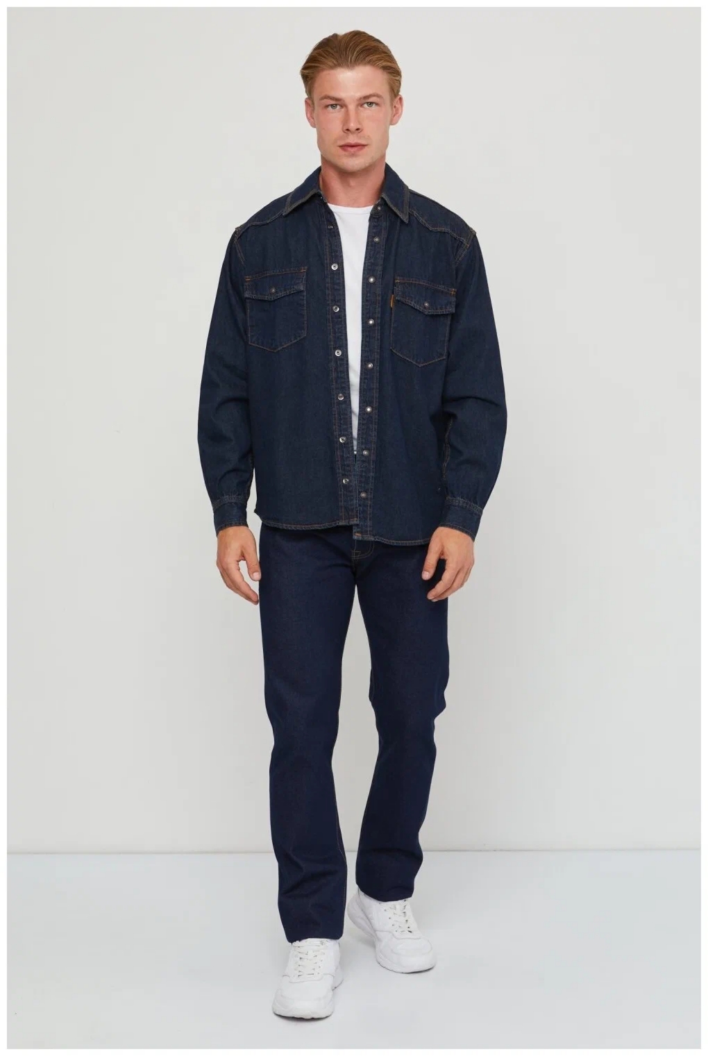 Модель классического прямого кроя с длинными рукавами.