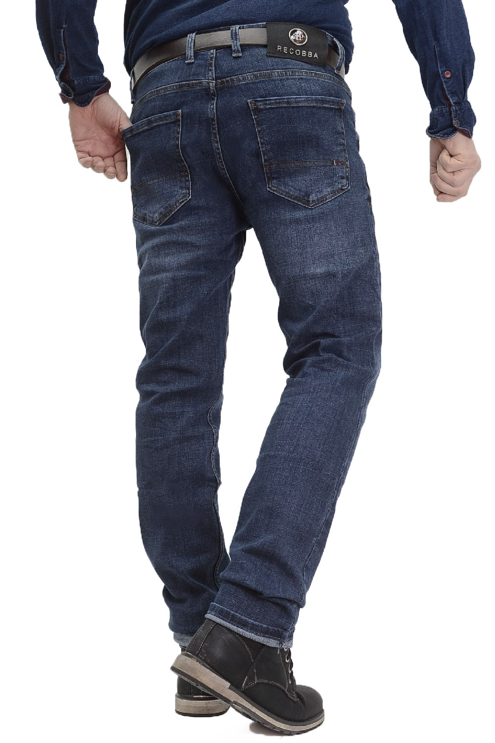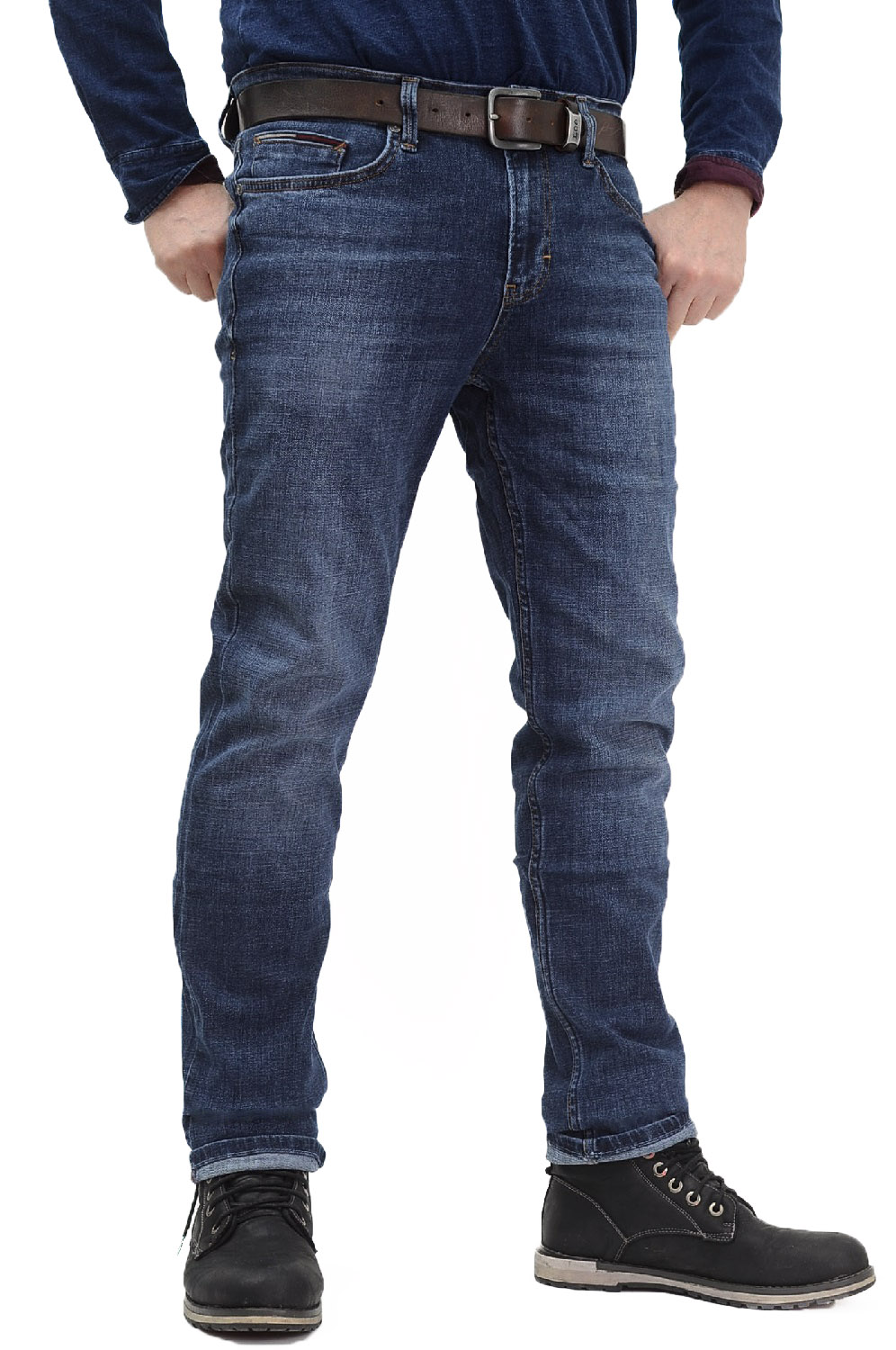Мужские джинсы средней плотности с небольшими потертостями