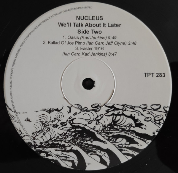 A2Sun Child A3Lullaby For A Lonely Child A4We'll Talk About It Later B1Oasis B2Ballad Of Joe Pimp B3Easter 1916 Когда ансамбль представил программу на джазовом фестивале в Монтре, ей достался главный приз. Чуть позже "Nucleus" сорвали аплодисменты и на американском "Newport Jazz Festival", а также выпустили диск "We'll Talk About It Later". Этот более амбициозный, более эмоциональный и более роковый альбом, чей заглавный трек звучал как хендриксовская "Voodoo Chile" в транскрипции "Weather Report", обозначил усилившееся влияние гитары Спеддинга. Альбом отличный, для всех любителей джаз-рока. ________________________________________________________