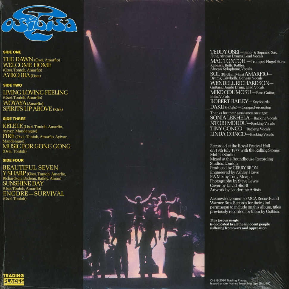 Несмотря на свое лондонское происхождение группа "Osibisa" была основана чернокожими музыкантами – четырьмя африканцами и тремя выходцами с Карибского бассейна. Первый же миньон группы, "Music For Gong Gong", оказался хитом. Последующие три сингла ("Sunshine Day", "Dance The Body Music" и "Coffee Song") все побывали в британской горячей десятке. Дебютный альбом "Osibisa" представлял собой музыку с роковыми корнями, обильно приправленную африканскими ритмами. Группа неплохо смотрелась живьем и сумела привлечь к себе внимание большого количества поклонников. О популярности "Osibisa" можно было судить хотя бы по тому, что второй диск, "Woyaya", занял одиннадцатую строчку в британских чартах, а на заглавный трек с этого альбома сделал кавер Арт Гарфанкел. В конце 70-х группа много гастролировала, собирая особенно много народу в Африке, Австралии, Индии и Японии. ________________________________________________________