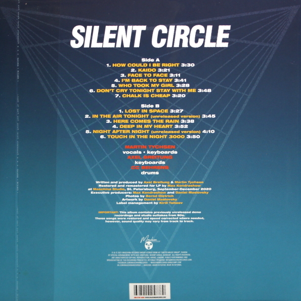 Описание Silent Circle – Chapter Italo Dance (black) 2021Silent Circle – Chapter Italo Dance 2021 LPMaschina Records – MASHLP-043 BLACK VINYL Vinyl, LP, Album, Limited Edition, Remastered НОВЫЙ, В УПАКОВКЕ ПРОИЗВОДИТЕЛЯ Второй том неизданных треков и 02 — Kaido (Unreleased Track)