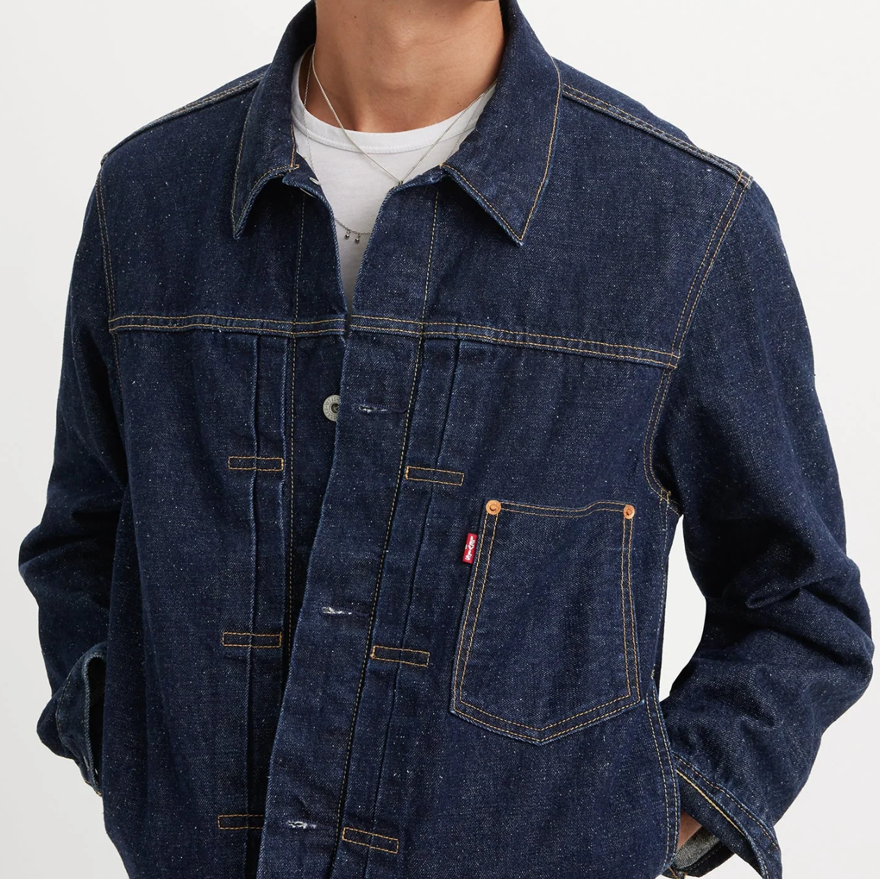 Описание Levi's RETRO cэлвидж деним ORIGINALДжинсовая мужская куртка Levis Men Type I Trucker Retro Jacket ORIGINAL Сэлвидж деним selvedge denim (selvage denim) Куртка Levi's в винтажном стиле — это отсылка к куртке Trucker Jacket Type I 1936 года с такими деталями того времени, как двойная складка спереди, один нагрудный карман и застежка сзади для регулируемой посадки. Обновленный свободный крой и боковые карманы, чтобы получить лучшее из старого и нового. Винтажный образ с современными деталями Плиссированные детали Носите свой настоящий размер, чтобы получить непринужденный, сидящий как влитой образ, или на размер больше, чтобы получить идеальный слой, который можно накинуть поверх любимой толстовки с капюшоном Становится лучше со временем с естественным выцветанием. Уникальное сочетание хлопка и конопли для аутентичного вида и более мягкого ощущения Джинсовая куртка Levis Men Type I Trucker Jacket - это стильная и практичная модель для мужчин. Она выполнена из высококачественного денима синего цвета, который отлично сочетается с различными образами. Куртка имеет прямой крой и лаконичный фасон, который подчеркивает мужественность и силу ее обладателя. Манжеты на пуговицах, подол регулируется ремешком на спинке , что позволяет куртке хорошо прилегать к телу и не допускать попадания холодного воздуха внутрь. Куртка имеет простой нагрудный карман. Эта модель прекрасно подойдет для повседневной носки в любое время года. Она прослужит своему обладателю долгие годы, сохраняя свой первоначальный вид и качество. 4 внешних кармана, 2 внутренних. Цвет: темно-синий Состав ткани: 100% хлопок (достаточно плотная) Страна бренда: США Размещение производства: КНР