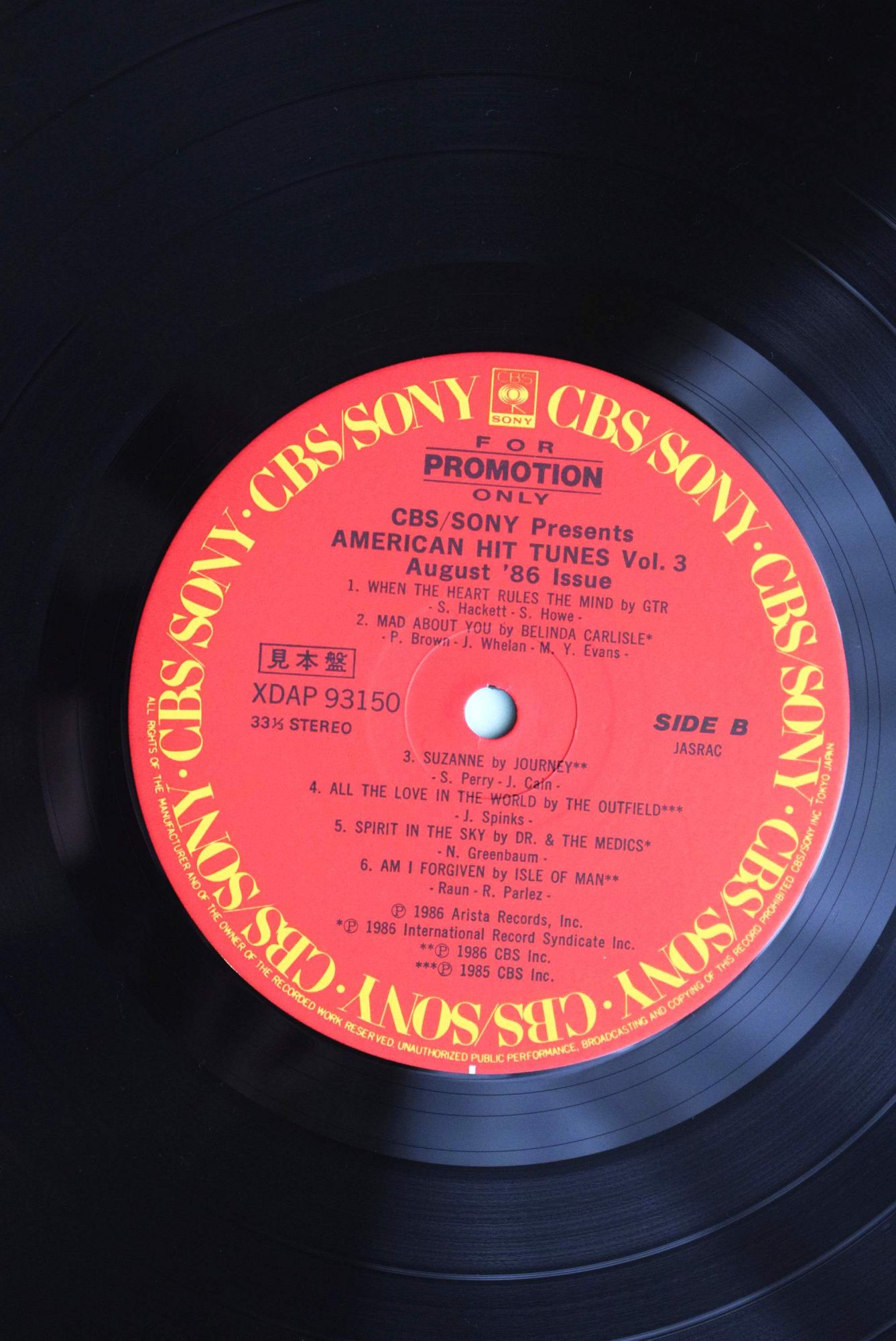 Японский образец виниловой пластинки (XDAP-93150) CBS SONY American Hit Tunes Vol.3 - август 1986 года. СОСТОЯНИЕ: конверт NM / винил Mint ЗВУК: 1 сторона Mint / 2 сторона Mint Промо версия, на Дискогсе нет. Пластинка в идеальном состоянии Mint. Отличный сборник, "проходных" песен нет. ![]()