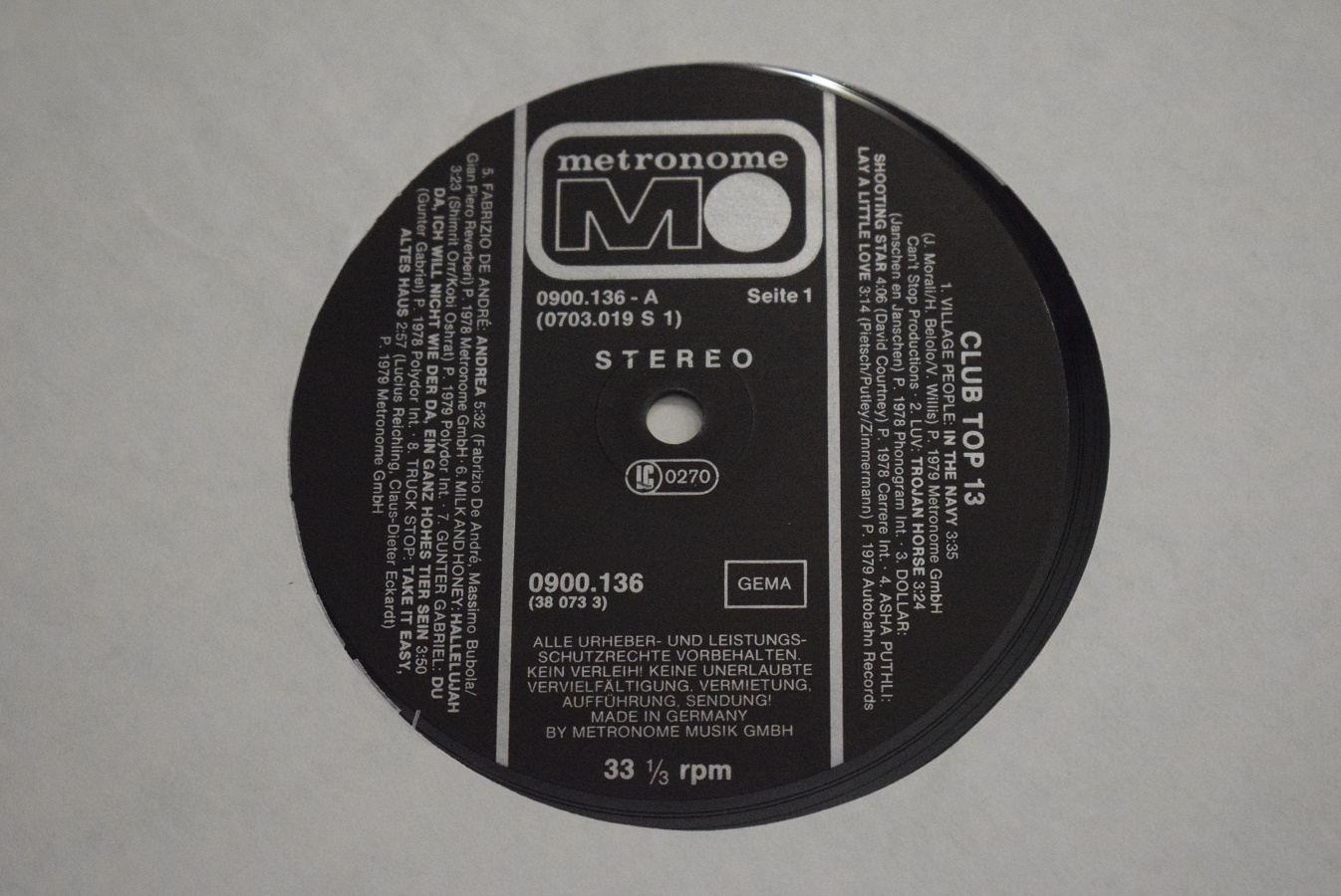 Club Top 13 – 38 073 3, Metronome – 0900.136 16 Top Hits – LP, Compilation, Stereo Germany 1979 Сборник. Первое издание СОСТОЯНИЕ: конверт EX+ / винил N/M ЗВУК: 1 сторона EX+ / 2 сторона EX Изгибы и деформации отсутствют
