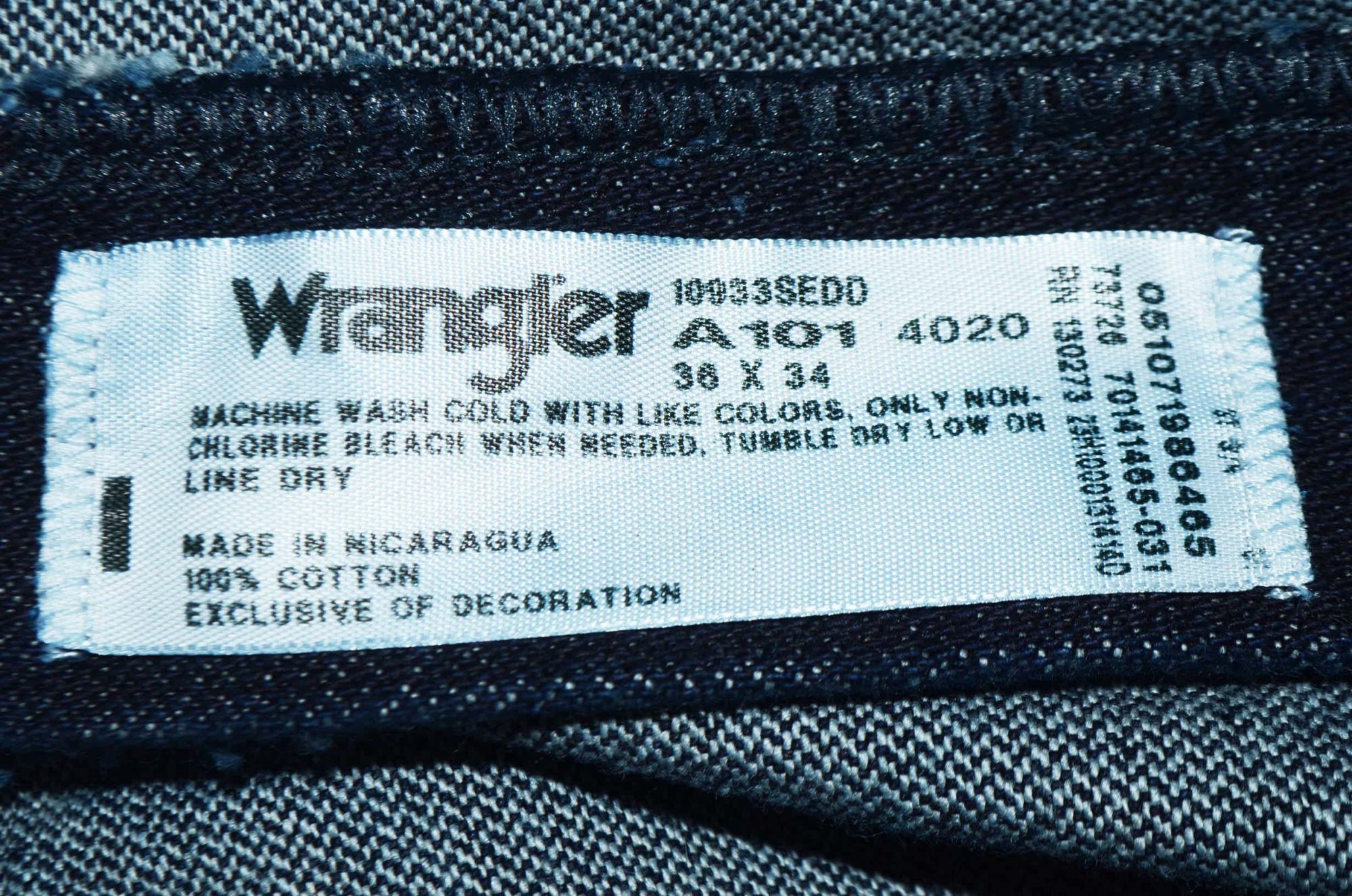Описание Wrangler 933Джинсы WRANGLER (серебряная серия) черный с серебром патч. Крой: классический с высокой посадкой SLIM FIT плотная посадка в бедрах, немного клиновидная штанина Цвет: Dark Denim (темно-синий) Состав ткани: 100% Cotton, 14.75 oz. Denim Талия: высокая Застежка: молния Усадка: не дают усадку Страна бренда: США Размещение производства: Никарагуа / Мексика Уход за изделием: Машинная стирка в холодной воде.Предварительно вывернуть наизнанку, застегнуть молнию и пуговицу. Сушка возможна только естественным образом. Не используйте режим сушки стиральной машины, или сушильный шкаф. Можно гладить. Характеристики Wrangler 933