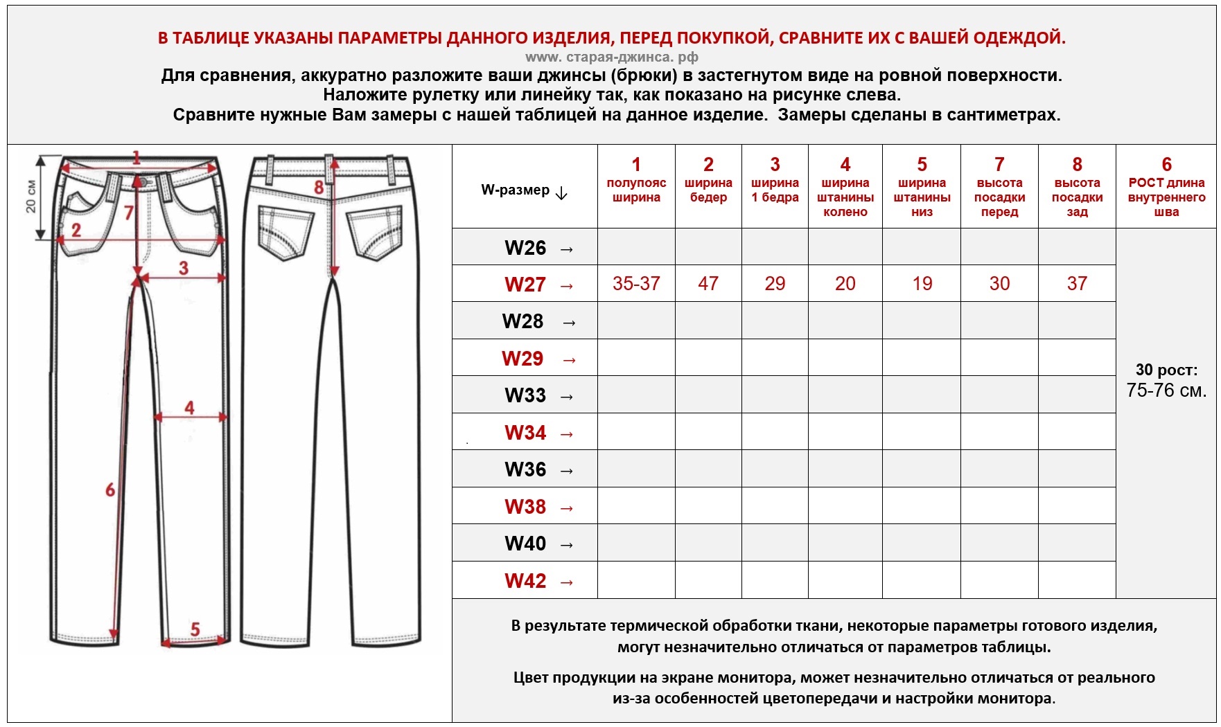 Не забудьте выбрать размер больше, так как винтажный крой предполагает узкую талию и узкие бедра!