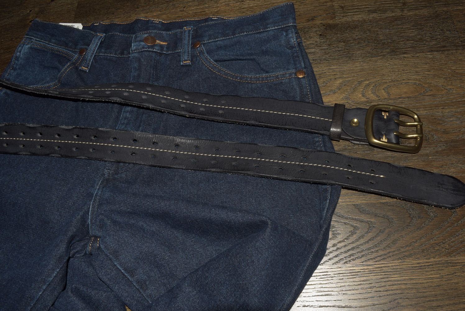 Винтажный, тяжелый кожаный ремень ручной работы